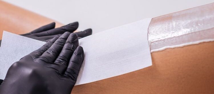 Then, we carefully lay a cloth or paper strip on the waxed section, press it down uniformly for good adhesion, and pull it off gently in the direction opposite to hair growth for effective and clean hair removal.