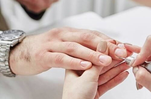 Nails are carefully trimmed to an even length and cleaned to remove dirt and buildup. They are then shaped neatly to maintain a natural, masculine look—clean, straight, and well-groomed. This step enhances nail appearance while preventing breakage and uneven edges.
